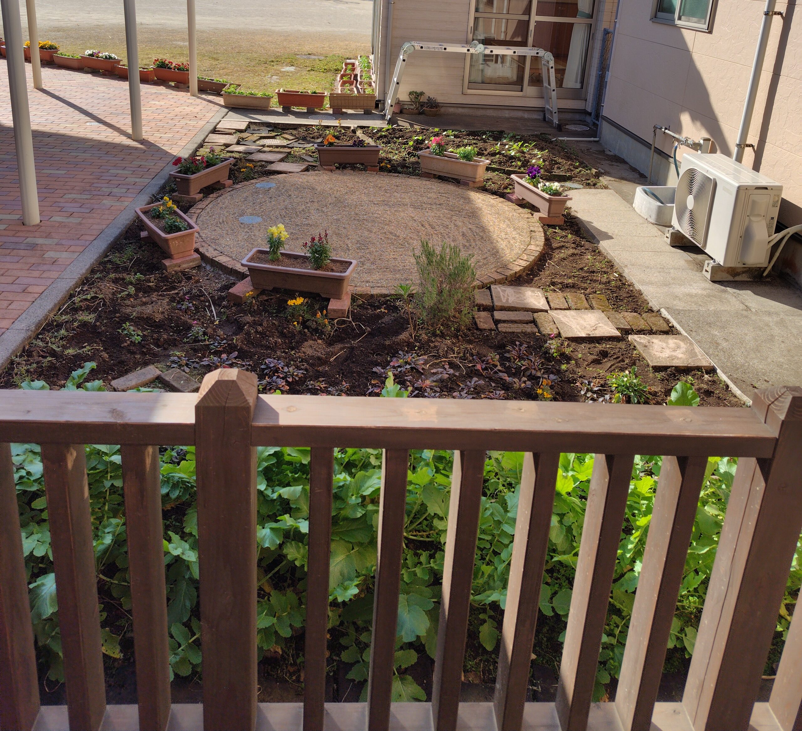 こみなとさん家のふれあいルームから見える景色です。 手すりで少し隠れていますが、写真の下の部分に葉っぱが生い茂っているところがあります。 ここをお外から見てみると・・・ 大根の頭が見えました。種をまき、芽が出て、どんどん大きくなっていく大根の成長をふれあいルームから見るのが楽しみのひとつになっています。大根は、サラダや煮物、おでんなどに合い、冬に欠かせない食材ですよね。 みなさんと収穫できるのを楽しみにしています😊