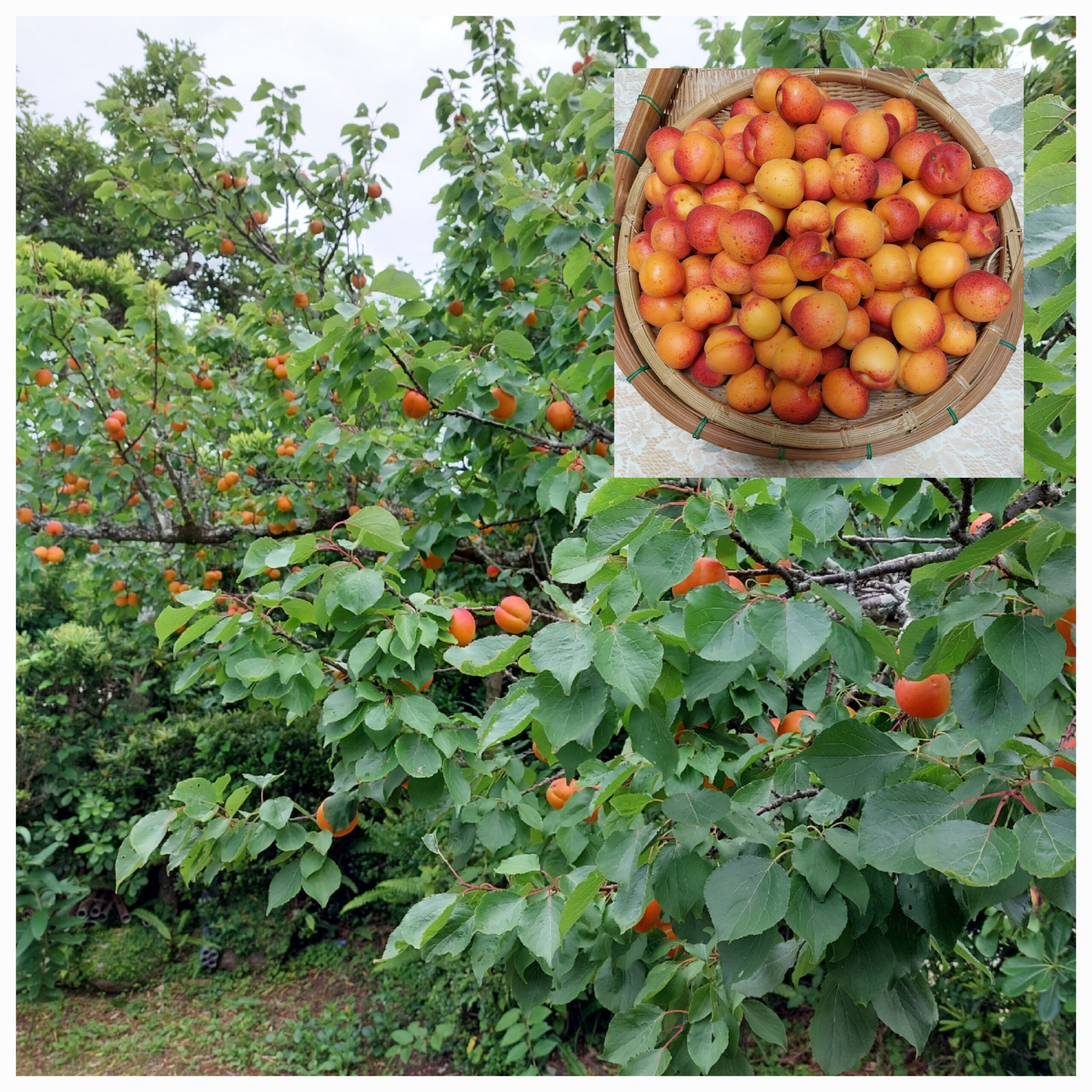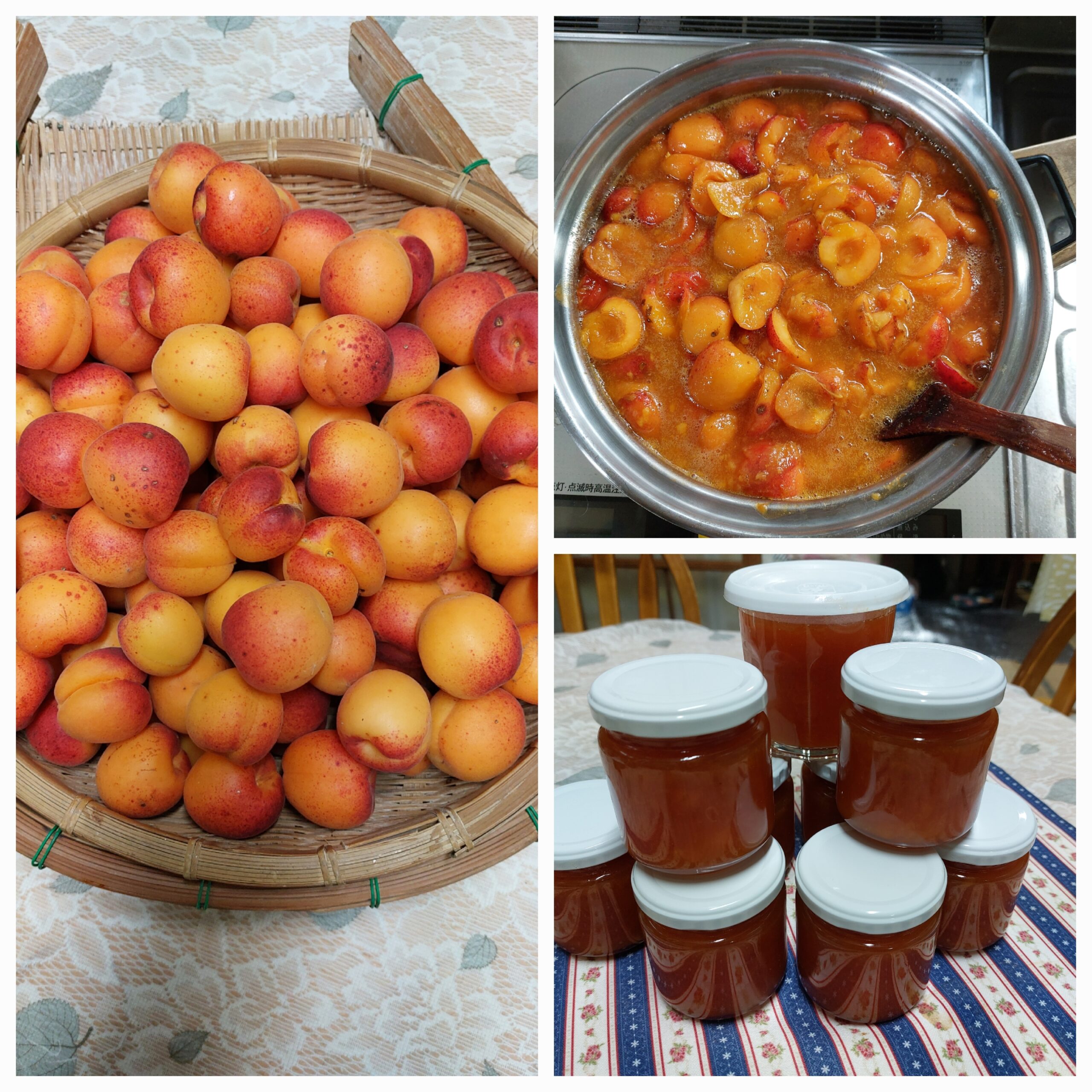 3月に白い花をつけた杏の木に、たくさんの実がなりました。今年は梅雨入が早く、実が上手く熟してくれるのか心配しましたが、雨の晴れ間にオレンジ色に熟しました。少し小ぶりでしたが、甘酸っぱい実は、ジャムや果実酒になりました。きれいに熟した杏は生でも食べましたよ。😋
