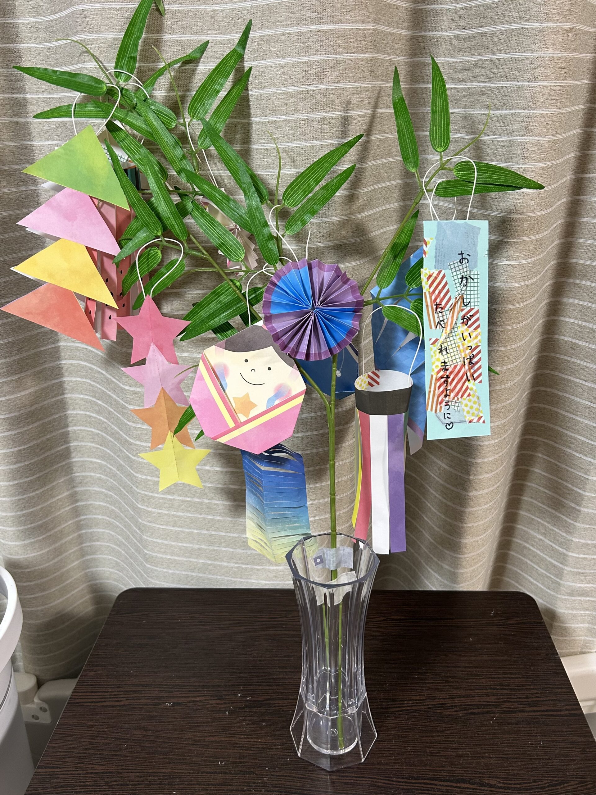 梅雨時期、キレイに咲いていた紫陽花の花も少しずつ枯れ始め、もうずぐ見納めかと思うとちょっぴり寂しい気持ちになりますね。梅雨が終わると、いよいよ夏本番! 今年も暑くなりそうです。夏の最初のイベントといえば7月7日の七夕です。我が家も七夕に向けて、飾り作りや短冊に願い事を書きました。 短冊の色で願い事の意味は違うそうですよ! みなさんの願い事が叶いますように・・・。